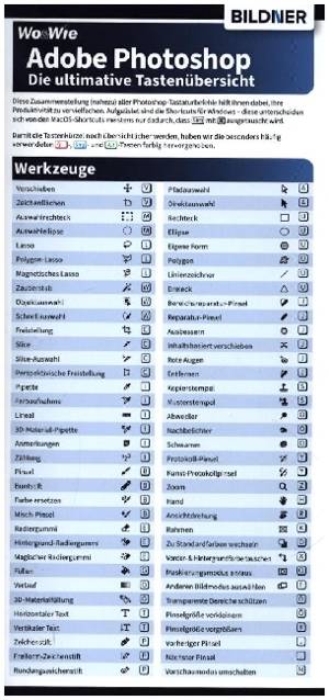 Diese praktische Faltkarte enthält nahezu alle Tastenkürzel für Adobe Photoshop (Version CC = Creative Cloud) . Mit praktischer Tastaturkarte auf der ...Lees meer