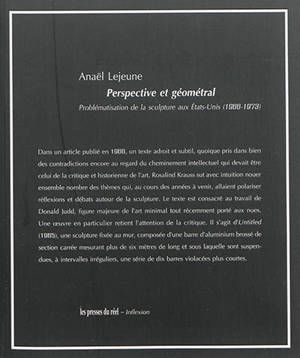 La présente étude porte sur la notion de sculpture telle qu'elle s'est trouvée problématisée aux États-Unis durant la seconde moitié des années soixan...Lees meer