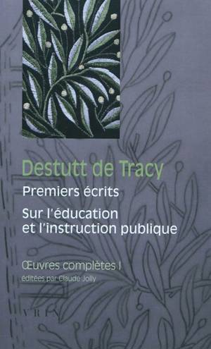 Tome premier des OEuvres complètes de Destutt de Tracy (1754-1836), ce volume comprend tout d'abord les textes que le fondateur et chef de file de l'I...Lees meer