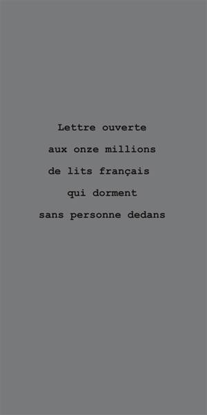 Une lettre adressée aux millions de lits inoccupés en France, lits de chambres d'amis, de résidences secondaires et autres solutions de couchage de dé...Lees meer