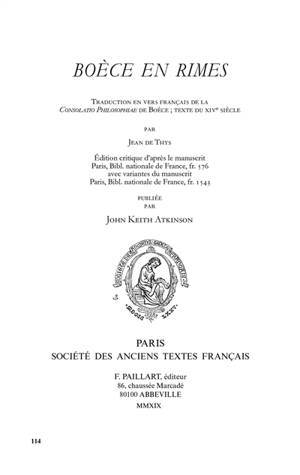 Cette traduction anonyme en vers et en prose de la Consolatio philosophiae date d'environ 1350-1360. Il s'agit de la traduction française la plus répa...Lees meer