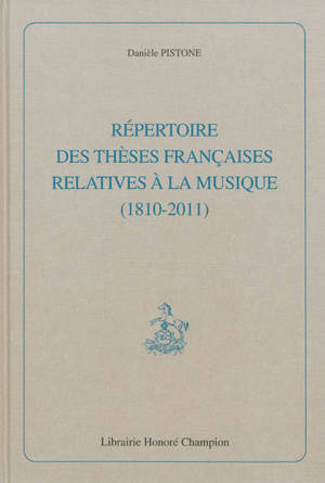 Réprtoire des thèses françaises relatives à la musique (1810-2011) Fruit de trente ans de travail, voici réunis les intitulés de quelque 3 400 thèses ...Lees meer