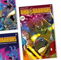 Exclusieve gesigneerde editie. Heel, heel lang geleden, toen hun planeet vernietigd werd door een troep zoogdieren, vluchtten vijf dinosaurussen naar ...Lees meer