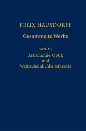 Band 5 umfaßt die Themenbereiche Astronomie, Optik und Wahrscheinlichkeitstheorie. Er enthält Hausdorffs Dissertation über die Refraktion des Lichtes ...Lees meer