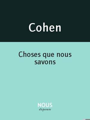 Choses que nous savons est le deuxième livre de Francis Cohen aux éditions Nous, après Diesmal (2011). Entre Ponce Pilate et Francis Ponge, la langue ...Lees meer