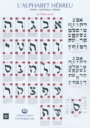 Ce poster présente synthétiquement chacune des 22 lettres de l'alphabet hébreu avec la lettre latine correspondante, la valeur numérique, la symboliqu...Lees meer