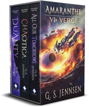 AMARANTHE VI: VERGE delivers over 1,400 pages of thrilling Sci-Fi Adventure **Includes the final three novels in the Riven Worlds series ( All Our Tom...Lees meer