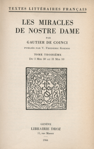 Gautier de Coinci, moine bénédictin du début du XIIIe siècle, est l'un des tout premiers (et un des plus grands) trouvère de langue d'oïl. Son oeuvre ...Lees meer