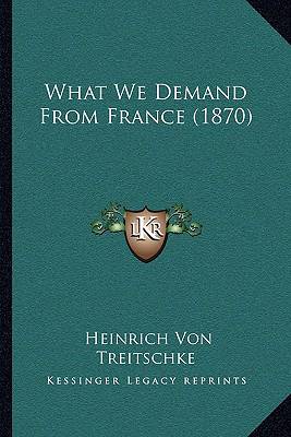 ""What We Demand From France"" is a political treatise written by Heinrich Von Treitschke in 1870. The book is a reflection of the political climate i...Lees meer