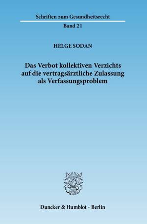 95b SGB V, der am 1. Januar 1993 in Kraft trat und seitdem unverändert gilt, verbietet den kollektiven Verzicht auf die vertragsärztliche Zulassung un...Lees meer