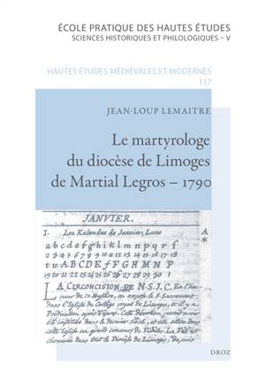 En 1790, Martial Legros poursuit la rédaction du martyrologe du diocèse de Limoges. L'ensemble offre une synthèse des travaux d'hagiographie limousine...Lees meer