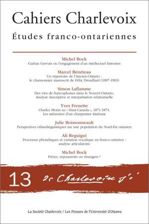 Depuis 1995, la Société Charlevoix publie les Cahiers Charlevoix. Etudes franco-ontariennes, un collectif exclusivement dévolu à la diffusion des trav...Lees meer