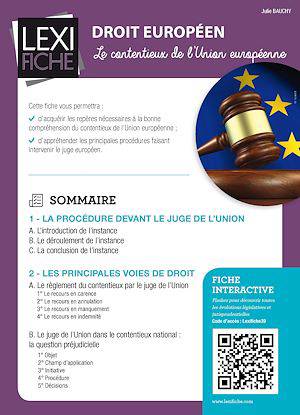 Cette fiche vous permettra : d’acquérir les repères nécessaires à la bonne compréhension du contentieux de l’Union européenne ; d’appréhender les prin...Lees meer