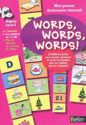 Words, Words, Words ! Mon premier dictionnaire interactif Prononciation ¤ les lettres de l'alphabet ¤ les nombres de 1 à 100 ¤ plus de 200 mots, class...Lees meer