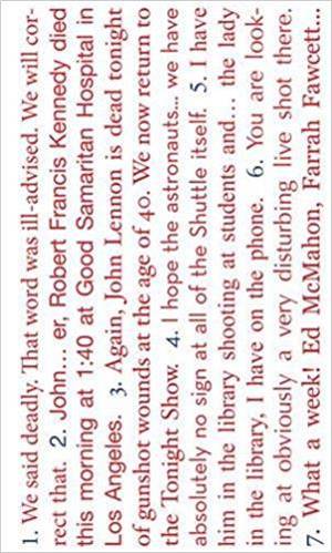 What are the words we use to describe something that we never thought we'd have to describe? In Seven American Deaths and Disasters, Kenneth Goldsmith...Lees meer