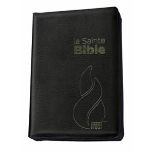 Le texte biblique dans la version Segond révisée de 1910, dans un ouvrage à onglets portant une reliure en similicuir noir, des tranches dorées et une...Lees meer