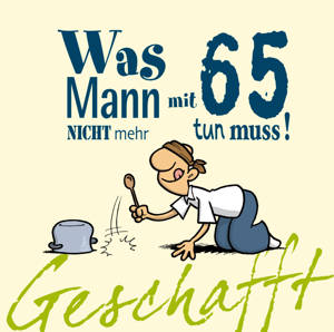 Herzlichen Glückwunsch zum 65sten! Endlich musst du nicht mehr Rücksicht nehmen, nicht mehr auf den Märchenprinzen warten, musst nichts mehr einsehen,...Lees meer