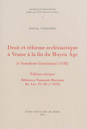 Droit et réforme ecclésiastique à Venise à la fin du Moyen Âge Le Synodicon Giustiniani (1438) : édition critique, Biblioteca Nazionale Marciana MS. L...Lees meer
