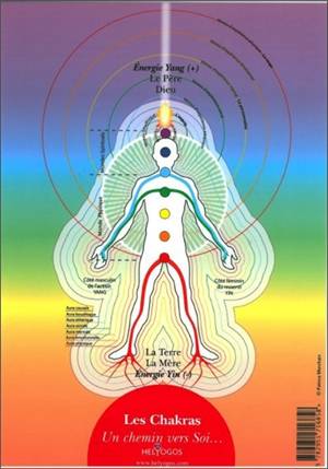 Au recto, un schéma représentant les différents chakras présents dans le corps humain ; au verso sont expliqués à quoi ils correspondent, leur nom san...Lees meer