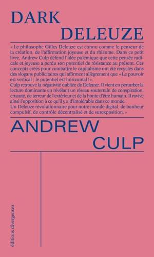 Dark Deleuze Le philosophe Gilles Deleuze est connu comme le penseur de la création, de l'affirmation joyeuse et du rhizome. Dans ce petit livre, Andr...Lees meer