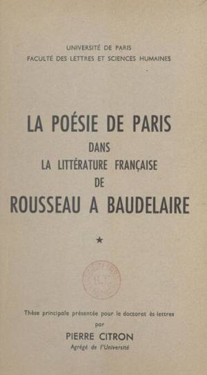 Etude de la place de Paris en tant que thème poétique dans la littérature française, en prose ou en vers, des Lumières à la seconde moitié du XIXe siè...Lees meer