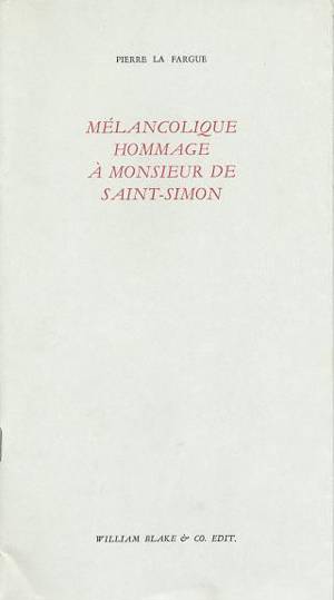 Pierre Lafargue use, comme Saint-Simon, de l'art du contre-pied. Il s'approprie le langage de son glorieux aîné, et en même temps, le réinvente. Une é...Lees meer