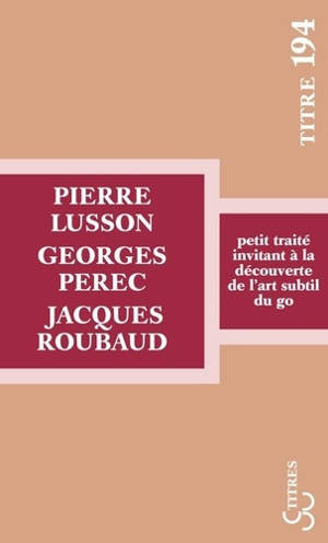 An introduction to the ancient Japanese strategy game of Go by Oulipo members Pierre Lusson, Georges Perec and Jacques Roubaud Written by a mathematic...Lees meer