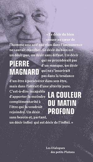 Pierre Magnard La couleur du matin profond Entré en khâgne pour y devenir traducteur de Virgile et d'Homère, Pierre Magnard reçut de Jean Beaufret l'i...Lees meer