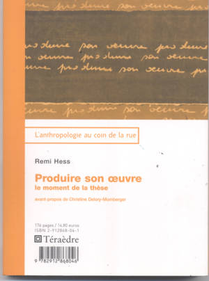 L'Université se produit et se reproduit par l'écrit: le moment du mémoire ou de la thèse est un espace-temps qui permet à l'étudiant de se construire ...Lees meer
