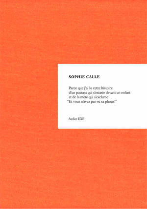 S. Calle inverse le rapport entre l'image et les mots qui l'accompagnent, en soulevant une réflexion sur l'influence qu'ils peuvent avoir sur la photo...Lees meer