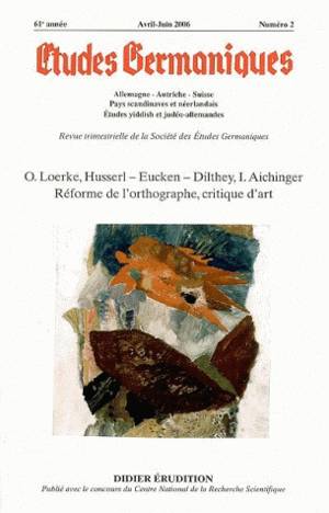 Au sommaire notamment : Die Welt als Kunst in der naturmagischen Lyrik Oskar Loerkes (T. Baginski) ; Monde de la vie et philosophie de la vie : Husser...Lees meer