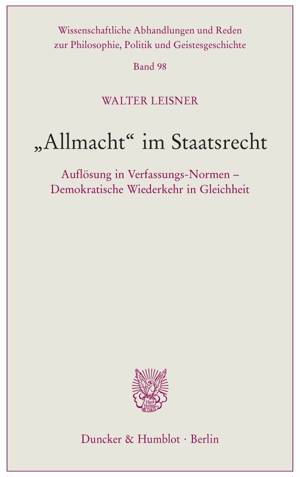 Allmacht ist ein Wort des Allgemeinen Sprachgebrauchs. Es steht fur Machtigkeit, fur Staatlichkeit als System(bildung) der Macht, nicht als auaerrecht...Lees meer