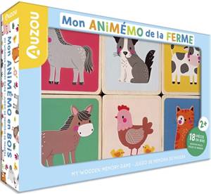 18 pièces en bois à associer pour développer la mémoire et le sens de l'observation Un poster 9 animaux de la ferme à découvrir 18 wooden pieces to ma...Lees meer