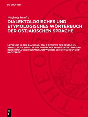Keine ausführliche Beschreibung für "Anhang, Teil 2: Register der deutschen Bedeutungen. Register der russischen Bedeutungen. Register der etymologisc...Lees meer