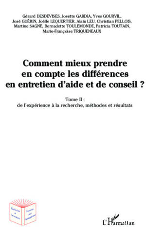Comment mieux prendre en compte les différences en entretien d'aide et de conseil ? Tome II : de l'expérience à la recherche, méthodes et résultats On...Lees meer