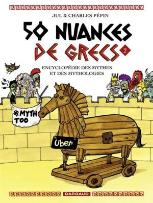 Les grands mythes de l'Antiquité grecque remis en scène dans des situations contemporaines : Zeus négocie les pensions alimentaires chez son avocate, ...Lees meer