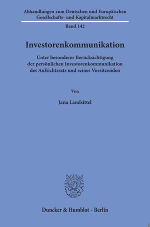 Insbesondere in Zeiten des Shareholder Activism verlangt Corporate Governance uber die personliche Kommunikation des Vorstands mit ausgesuchten Invest...Lees meer