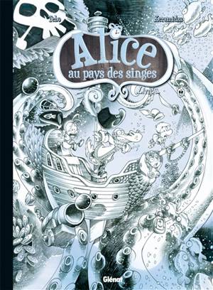 Version noir et blanc des aventures d'Alice qui en courant après le lapin blanc est assommée par une noix de coco, et se réveille dans la jungle, où t...Lees meer