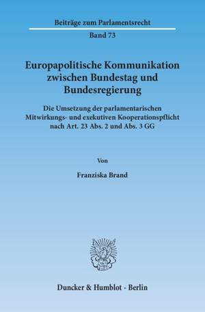Die Zusammenarbeit zwischen Bundestag und Bundesregierung in EU-Angelegenheiten bleibt ein aktuelles Thema, zuletzt im Rahmen der Finanzkrise. Die vor...Lees meer