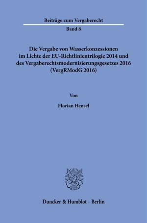 English summary: The Awarding of Water Concessions in the Light of the EU Directive Trilogy 2014 and the Public Procurement Law Modernization Act 2016...Lees meer
