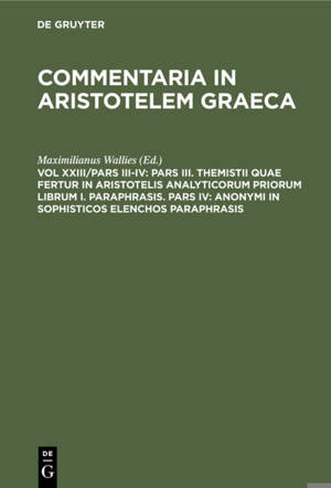 No detailed description available for "Pars III. Themistii quae fertur in Aristotelis analyticorum priorum librum I. Paraphrasis. Pars IV: Anonymi in ...Lees meer