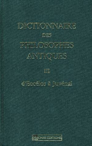 Le troisième tome du Dictionnaire regroupe 490 notices consacrées à des philosophes grecs ou romains ainsi qu'à des témoins importants de la tradition...Lees meer