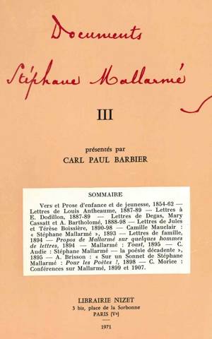 Ces Documents Mallarmé sont exclusivement consacrés à la correspondance entre Stéphane Mallarmé et Henri Cazalis (médecin et poète), de 1862 à 1897Lees meer