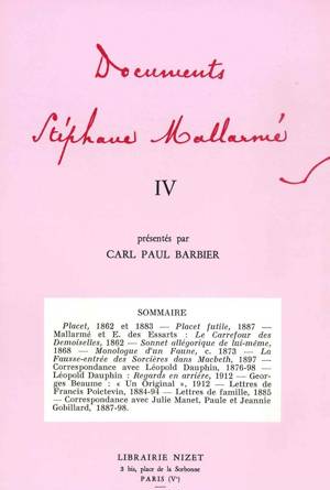Cette quatrième livraison des Documents Stéphane Mallarmé par Carl Paul Barbier est surtout consacré à la correspondance du poète : avec Julie Manet (...Lees meer