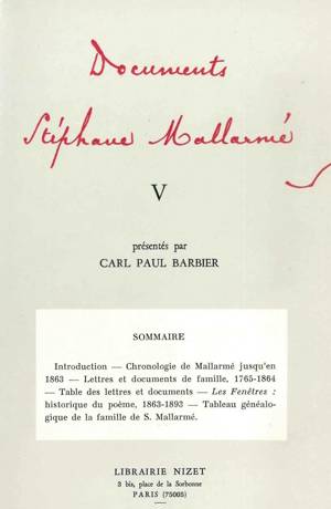 Ce Tome V des Documents Stéphane Mallarmé est presque entièrement consacré à la biographie du jeune poète et à la généalogie complète de sa famille.Lees meer