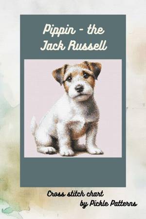 The cross stitch chart is a portrait of a seated Jack Russell puppy with white, tan and black markings. The dog is the focus of the image with no clut...Lees meer