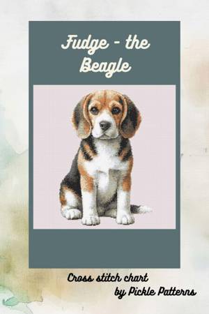 The cross stitch chart is a portrait of a seated beagle puppy with white, tan and black markings. The dog is the focus of the image with no clutter fr...Lees meer