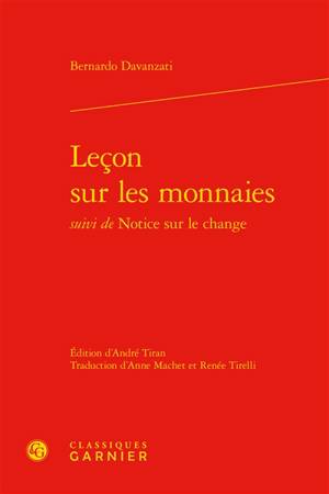 Les travaux économiques de Bernardo Davanzati se limitent à deux écrits : la Notizia de'cambi (Notice sur le change) et Lezione delle monete (Leçon su...Lees meer