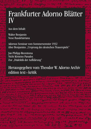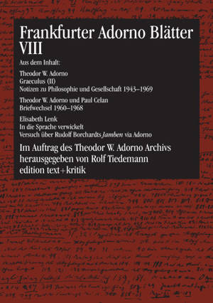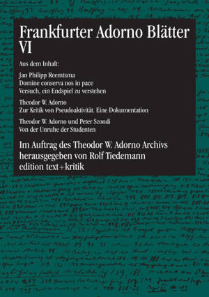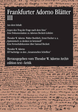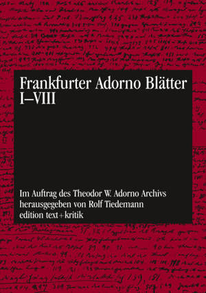 Die im Auftrag des Theodor W. Adorno Archivs von Rolf Tiedemann herausgegebene Reihe "Frankfurter Adorno Blätter" wurde im Jahr 2003 abgeschlossen. Mi...Lees meer