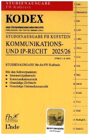 1. Auflage, Stand 1.9.2025 Mit der App zum Gesetz Die Ausgabe für Ihr Studium an der FH Kufstein Mit den Schwerpunkten: - Immaterialgüterrecht - Kommu...Lees meer